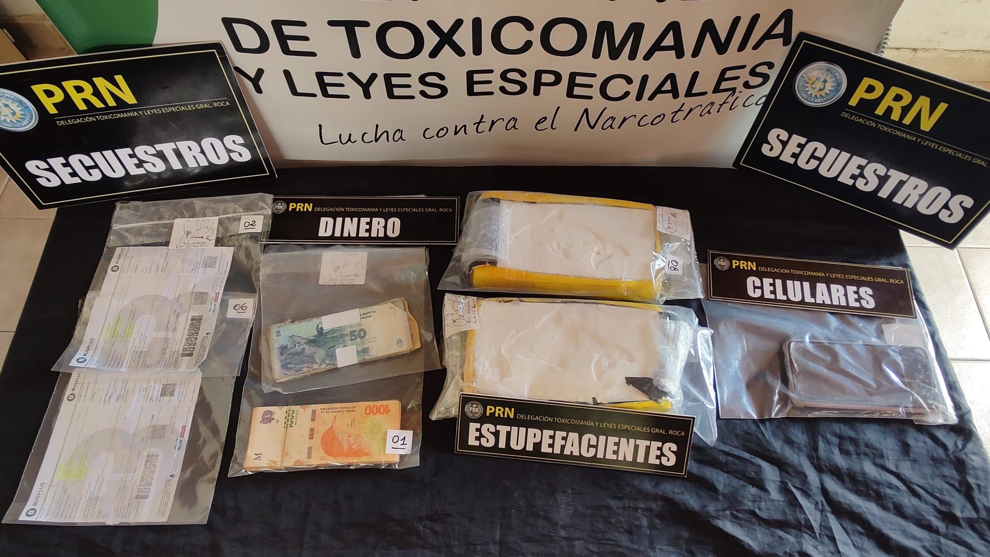 En el marco de una investigación llevada adelante por la Policía de Río Negro, personal de la Delegación Toxicomanía y Leyes Especiales de General Roca, detuvo a un hombre de 30 años que viajaba a bordo de un colectivo desde Buenos Aires hacia la localidad de Río Colorado con dos lotes rectangulares y compactos de Clorhidrato de Cocaína con el sello identificatorio “Delfín Blanco”, vinculado a organizaciones criminales del Norte del país.