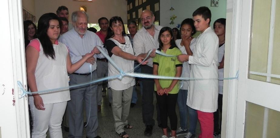 En representación del goberandor, Albeto Weretilneck, el ministro de Educación, Marcelo Mango, junto al intendente de Luis Beltrán, Juan Carlos Apud, y la comunidad de la Escuela N° 215 inauguraron ayer la primera etapa del SUM de la institución.